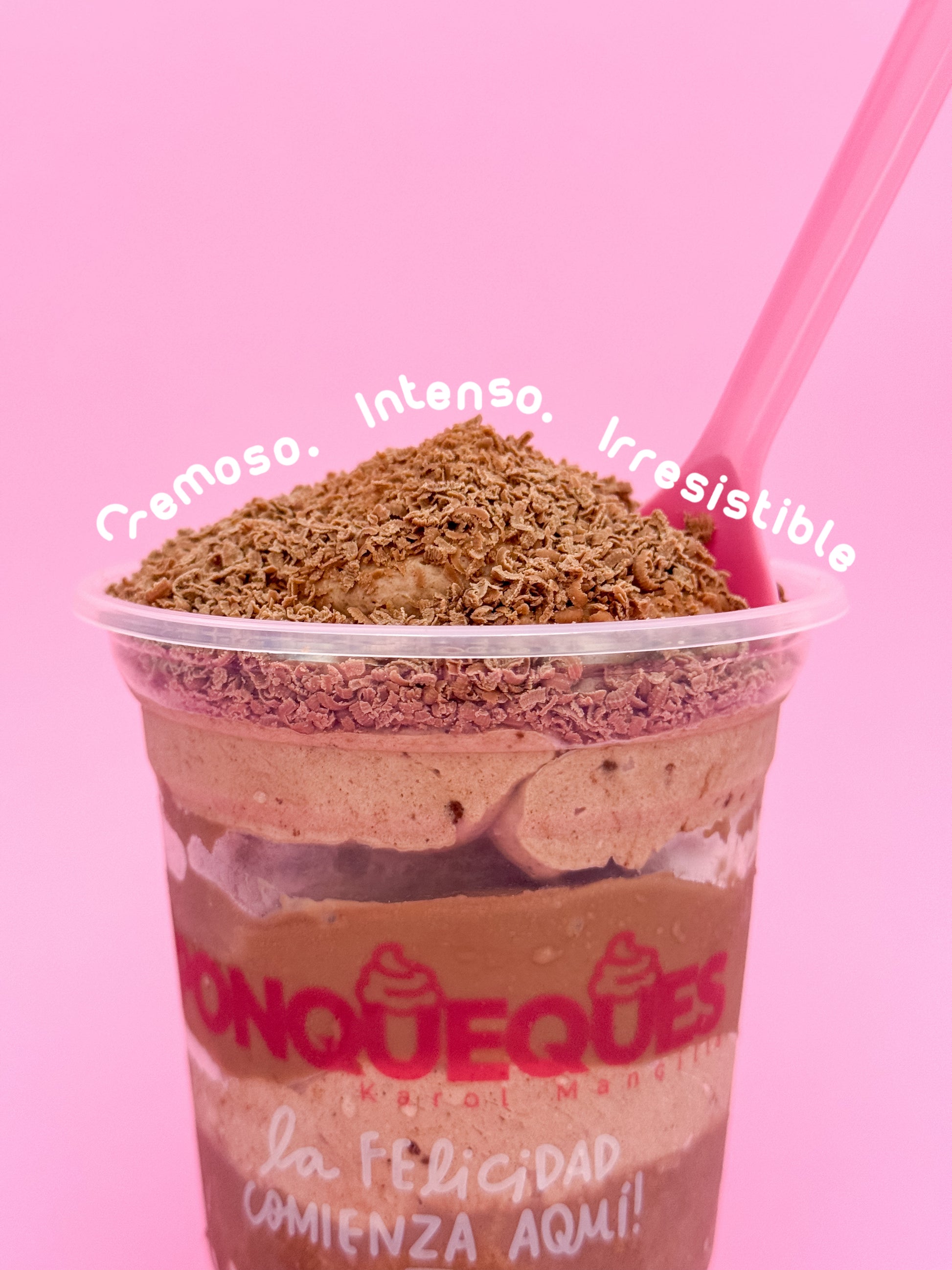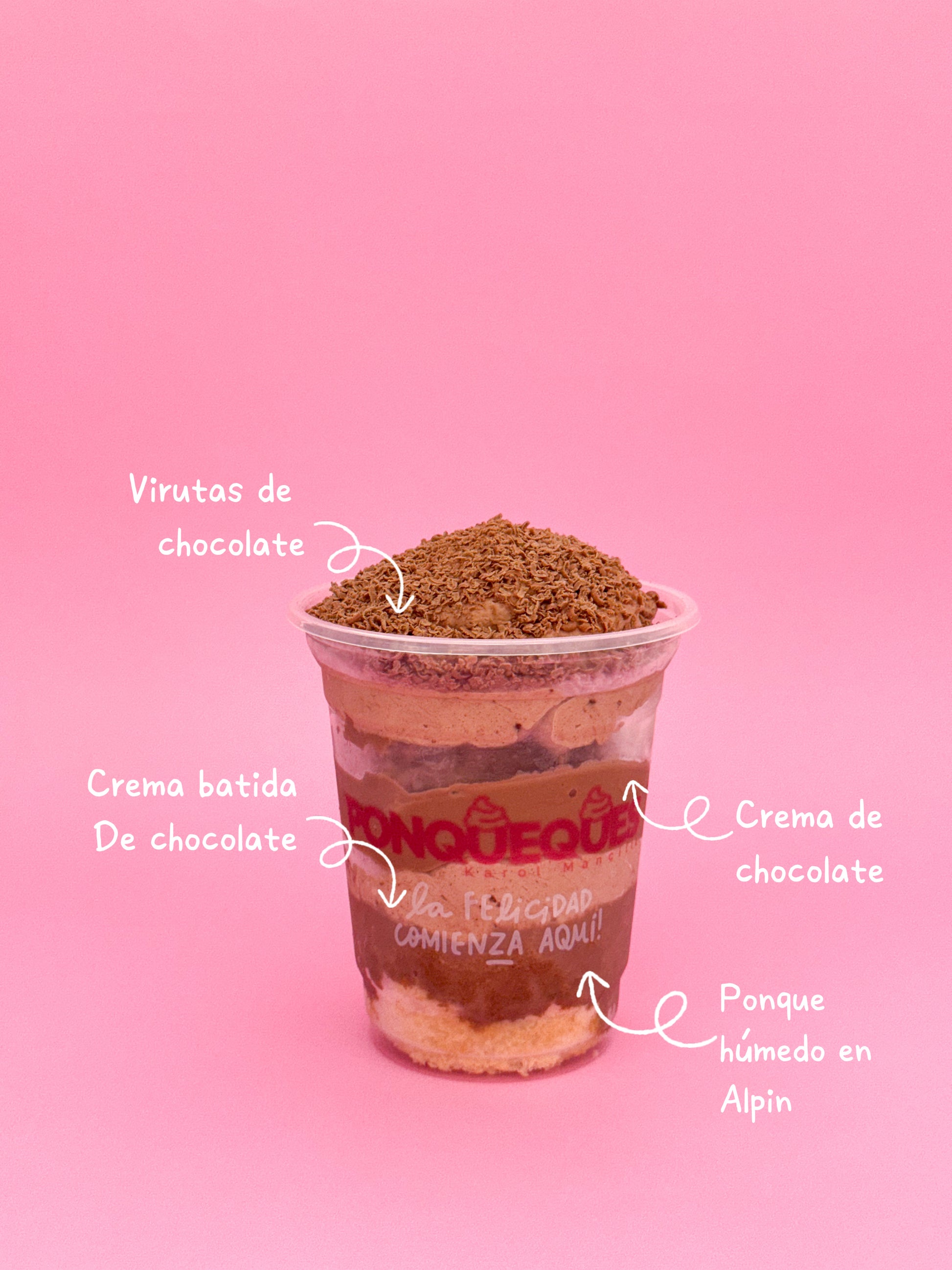 Disfruta de un delicioso postre frío en vaso de 12 oz con nuestro Cuchareable de Choco-Alpin. Con un ponque húmedo en Alpin, una cremosa batida de chocolate y una exquisita crema de chocolate negro, acompañada de virutas de chocolate de leche. Una combinación irresistible para saborear en cada cucharada. ¡Pruébalo ahora!