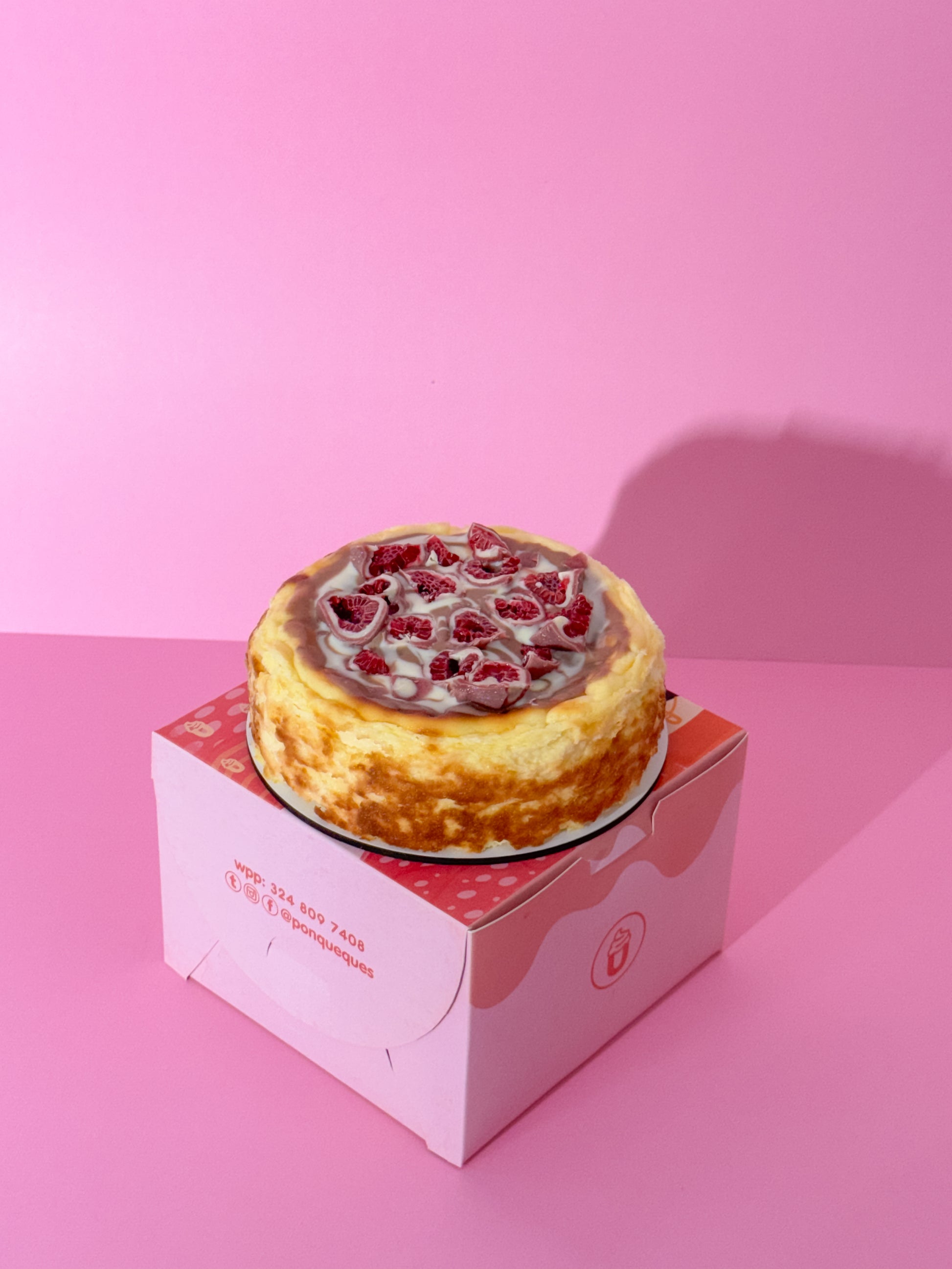 Elaborada 100% con Queso Crema Premium para una textura inigualable, y coronada con una capa generosa de crema de chocolate negro y blanco. ¿El toque final? La cubrimos con Franui originales (frambuesas frescas bañadas en dos chocolates) para darte el equilibrio perfecto entre lo dulce, lo ácido y lo cremoso.